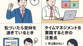 日墓の忙しさに追われて気が付いたら定時…。場面ごとにタイムマネジメントを意識した働き方を目指しましょう。